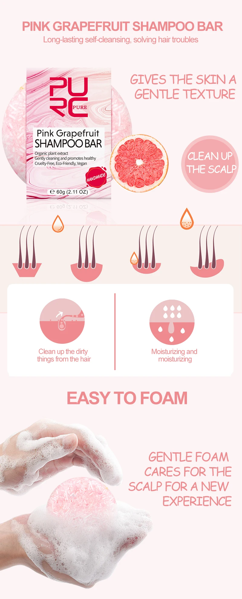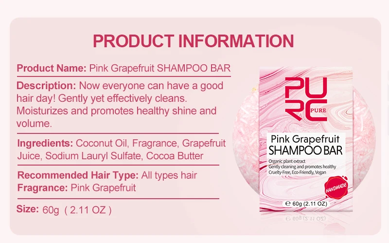 PURC Pink Grapefruit Shampoo Soap Deep Cleaning